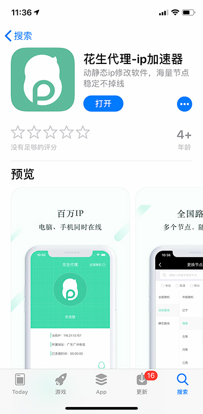 具体流程如下:1、进入App Store下载【花生代理】;(手机扫码直接进入)